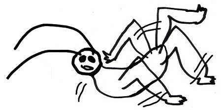 「あーボール籠に蹴躓いてコケたか?」